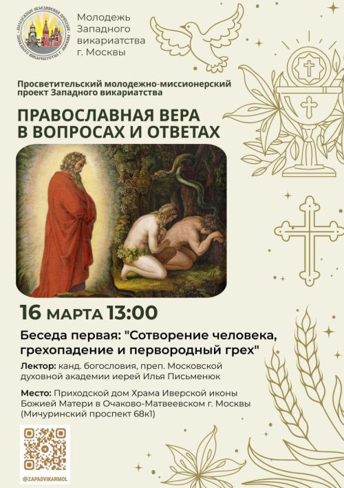 По благословению управляющего Западным викариатством г. Москвы архиепископа Одинцовского и Красногорского Фомы в течение Великого поста 2025 г. в храмах Западного викариатства будет проводиться просветительский молодежно-миссионерский проект «Православная вера в вопросах и ответах».