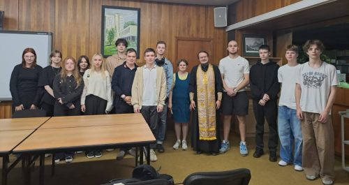 Перед молебном состоялась традиционная встреча священнослужителя со студентами учебного заведения, во время которой иерей Илья дал напутствие ребятам и девушкам на предстоящий учебный год, а также раскрыл христианское учение о познании как одного из основных принципов бытия человека.