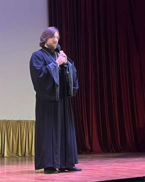 Во время своего выступления отец Илия поздравил преподавателей и студентов с праздником, напомнил о важном и ответственном труде обучения, который обязательно должен быть сопряжен с духовным ростом личности и ее нравственным развитием.