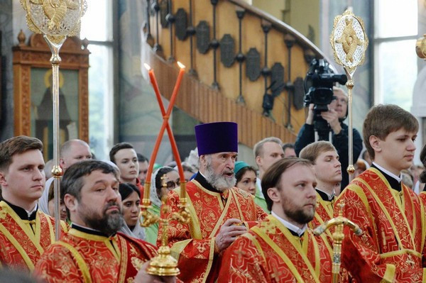 После сугубой ектении Предстоятель Русской Православной Церкви вознес молитву о мире на Украине.