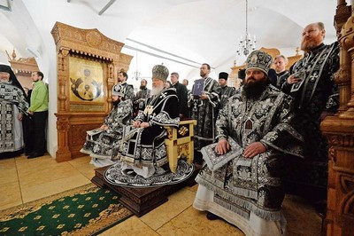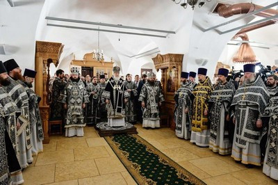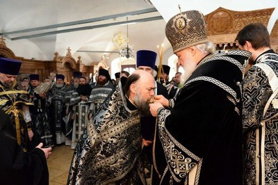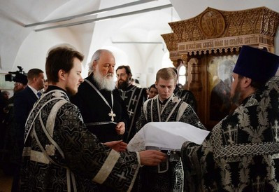 В понедельник Страстной седмицы Святейший Патриарх Кирилл совершил Литургию в Донском ставропигиальном монастыре