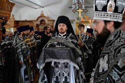 Его Святейшеству сослужили: архиепископ Венский и Будапештский Антоний; епископ Бронницкий Парамон, наместник Донского монастыря; насельники Донской обители в священном сане.