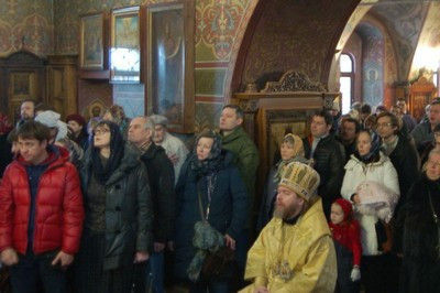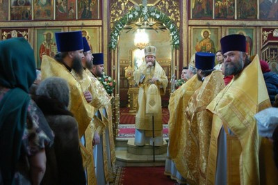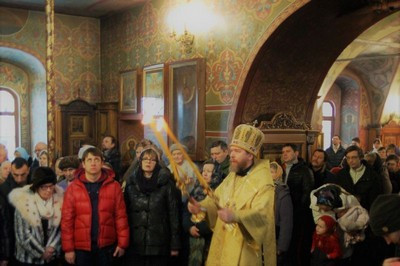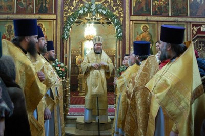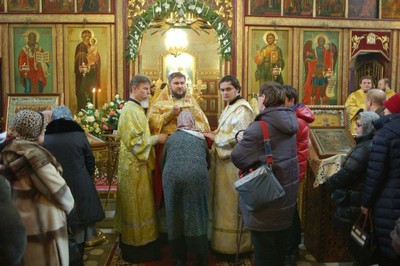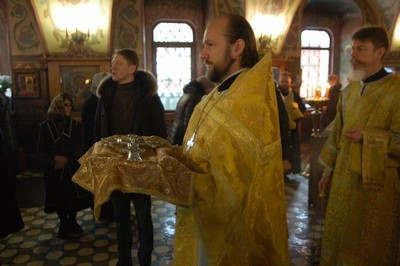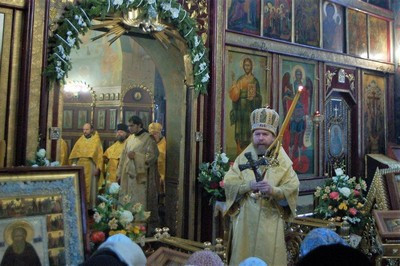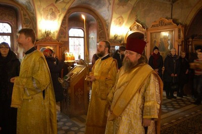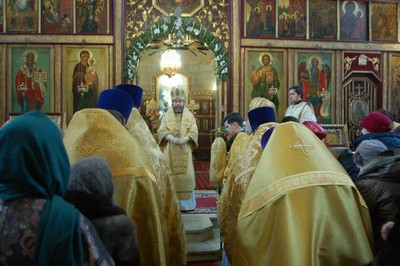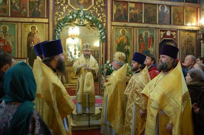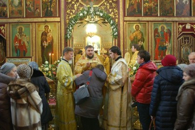По окончании литургии епископ Тихон поздравил настоятеля храма протоиерея Георгия Студенова с его 66-летием.