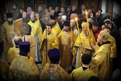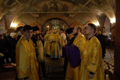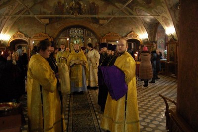 Ему сослужили благочинный храмов Михайловского благочиния, настоятель храма Архистратига Михаила протоиерей Георгий Студенов, благочинный храмов Георгиевского благочиния протоиерей Серафим Недосекин, духовенство Западного викариатства.