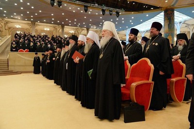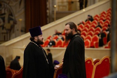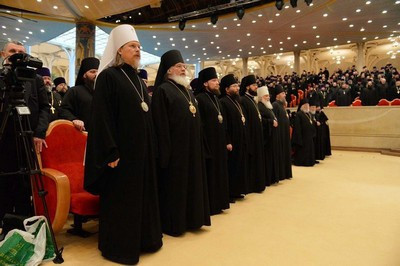 В президиуме собрания присутствуют: Патриарший наместник Московской епархии митрополит Крутицкий и Коломенский Ювеналий; управляющий делами Московской Патриархии митрополит Санкт-Петербургский и Ладожский Варсонофий; председатель Отдела внешних церковных связей Московского Патриархата митрополит Волоколамский Иларион; первый викарий Святейшего Патриарха по г. Москве митрополит Истринский Арсений; секретарь Святейшего Патриарха по г. Москве протопресвитер Владимир Диваков.