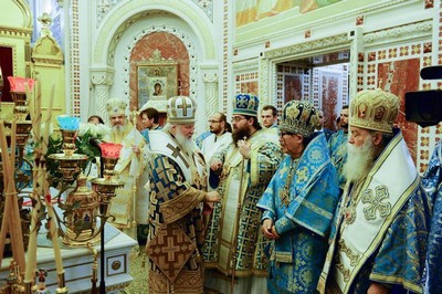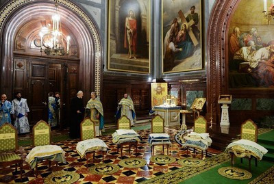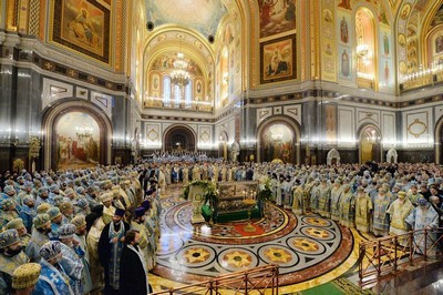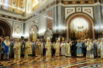 Торжественное богослужение в Храме Христа Спасителя в день 100-летия интронизации святителя Тихона, Патриарха Московского