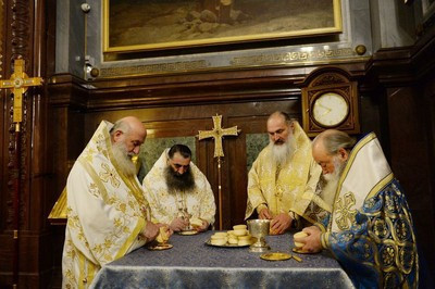 Божественную литургию совершили Предстоятели и главы делегаций Поместных Православных Церквей, участвующие в торжествах по случаю 100-летия восстановления Патриаршества в Русской Православной Церкви: Блаженнейший Патриарх Иерусалимский Феофил III; Святейший Патриарх Московский и всея Руси Кирилл; Святейший Патриарх Сербский Ириней; Блаженнейший Патриарх Румынский Даниил; Блаженнейший Архиепископ Кипрский Хризостом II; Блаженнейший Архиепископ Тиранский и всей Албании Анастасий; Блаженнейший Митрополит Варшавский и всей Польши Савва; Блаженнейший Митрополит Чешских земель и Словакии Ростислав; Блаженнейший Митрополит всей Америки и Канады Тихон; митрополит Ахалцихский и Тао-Кларжетский Феодор, глава делегации Грузинской Православной Церкви; митрополит Ловчанский Гавриил, глава делегации Болгарской Православной Церкви.