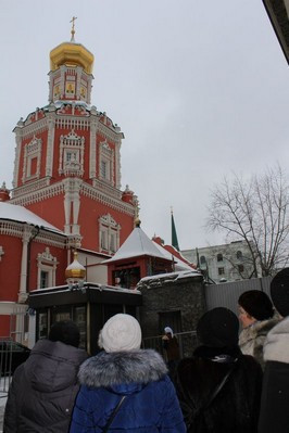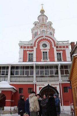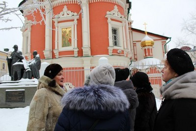 Экскурсовод Заиконоспасского монастыря рассказала слушателям, почему монастырь получил такое необычное название, показала здания, которые ранее принадлежали монастырю, рассказала о его истории. Сейчас монастырь состоит из верхнего и нижнего храмов, в которых смогли побывать паломники.