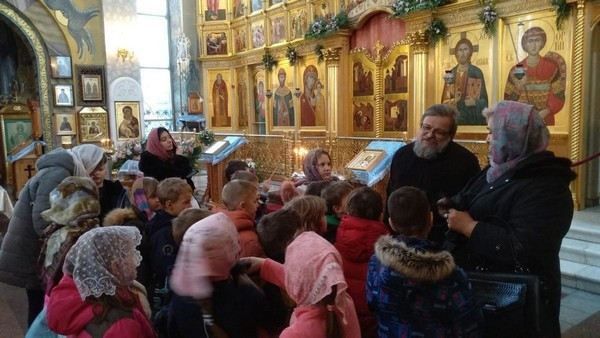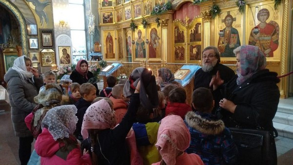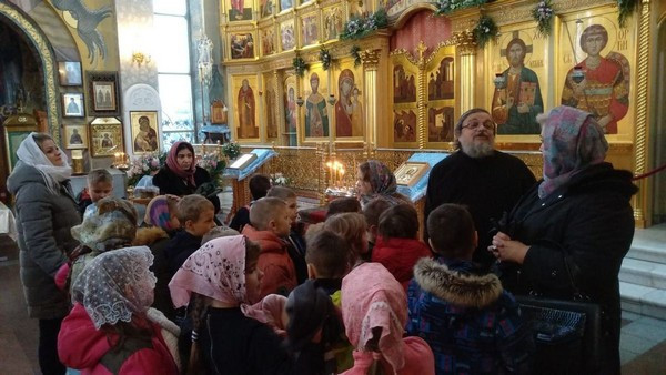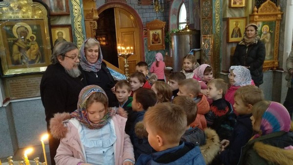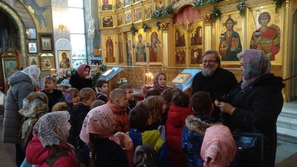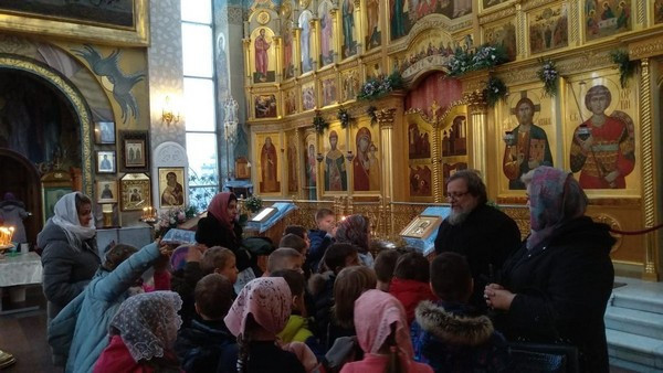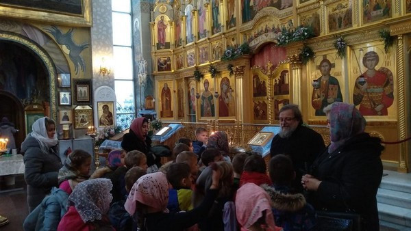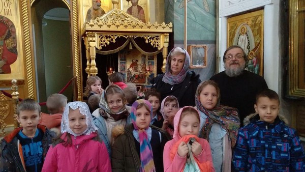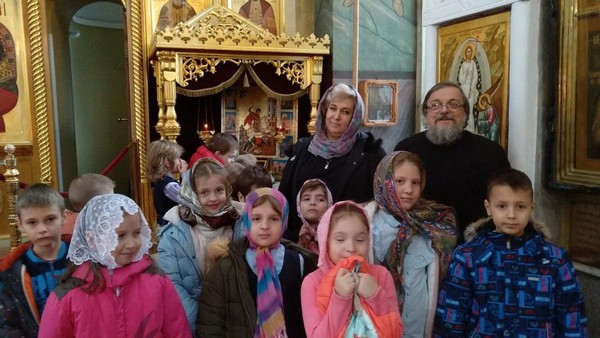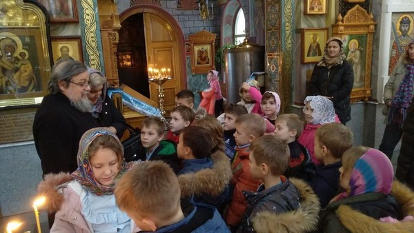 Радостно было видеть, как школьники благоговейно, без шума вошли в храм, дружно выстроились в очередь перед священником для прохождения Таинства Исповеди. Серьезно и молча отстояли всю Литургию и приобщились Святых Христовых Таин.