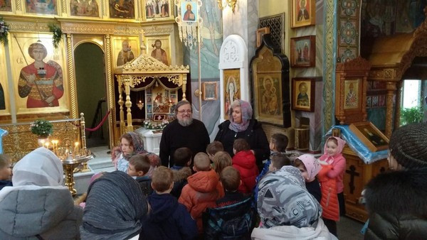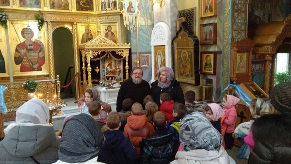 На ознакомительную экскурсию первоклассники пришли, в рамках изучения Основ Православной культуры. Лариса Владимировна рассказала детям об устройстве храма, кратко напомнила историю создания. Затем дети пообщались со священником, иереем Вадимом Никулиным. Отец Вадим рассказал детям житие святого, в честь которого был освящен храм, показал главную святыню – частицу мощей вмч. Георгия Победоносца. Прощаясь с гостями, батюшка пожелал ребятам Божией помощи в учении.