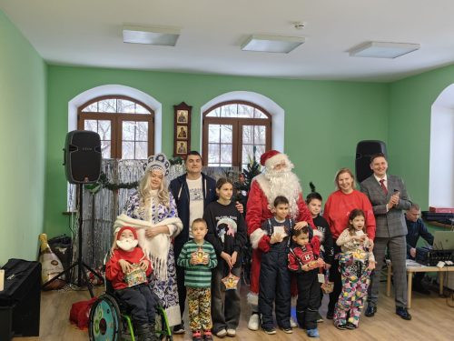 Кульминацией праздника стало детское поздравление. Активная прихожанка Анна Щелкушкина в образе Снегурочки вместе с Дедом Морозом вручила подарки детям из многодетных семей и семей участников СВО.