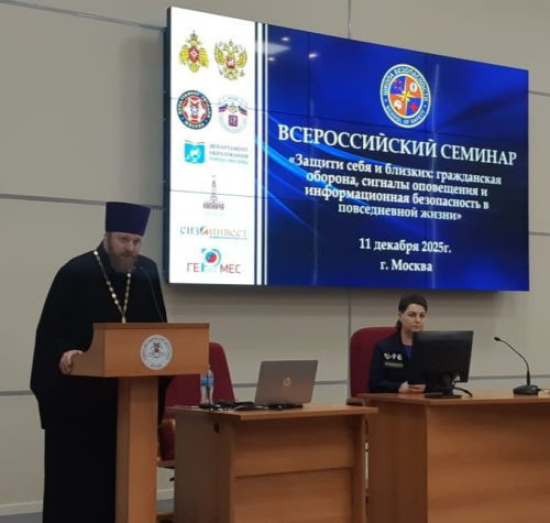Клирик храма в честь Смоленской иконы Божией Матери в Фили-Давыдково священник Владимир Хажомия в учебно-методическом центре г. Москвы совершил молебен «О призывании помощи Святаго Духа перед началом всякого дела» для преподавателей, учителей и учащихся, участников Всероссийского семинара по теме: «Защити себя и близких: гражданская оборона, сигналы оповещения и информационная безопасность в повседневной жизни».