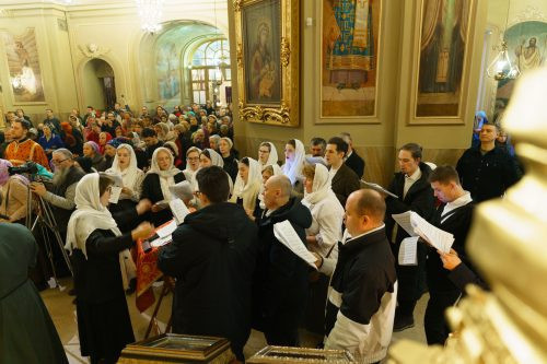 В алтаре молился митрополит Ионафан (Елецких). Хор храма прп. Сергия Радонежского в Солнцево исполнил песнопения Божественной литургии, написанные владыкой.