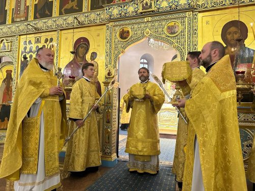 Его Высокопреосвященству сослужили клирики кафедрального собора. Во время сугубой ектении была вознесена молитва о Святой Руси.