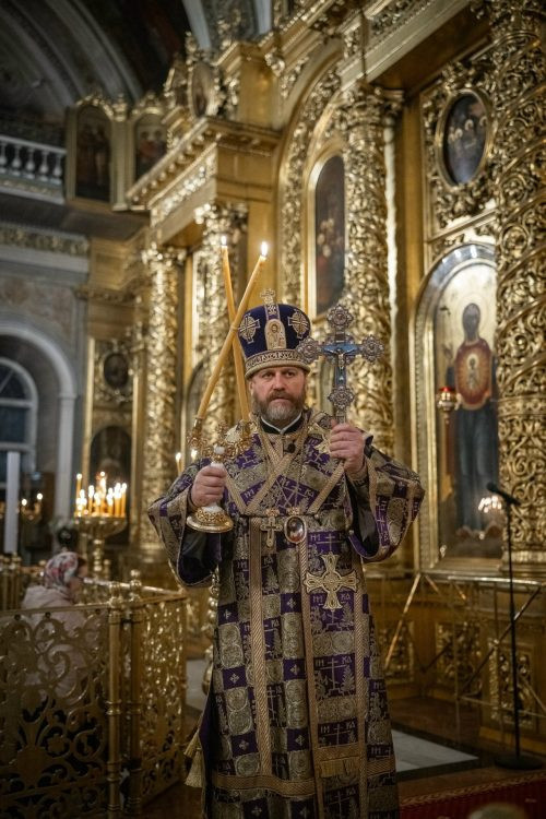 Его Высопреосвященству сослужило духовенство собора.