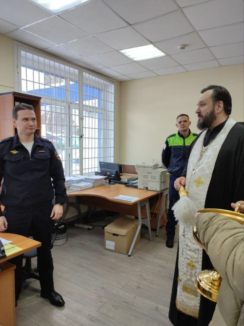 Ответственный за социальное служение в Западном викариатстве иерей Андрей Шишкин, посетил 2 ОСБ ГИБДД ГУ МВД по городу Москве, поздравил сотрудников с праздником Крещения Господня, передал Крещенскую воду для сотрудников, окропил святой водой здание батальона и автопарк ДПС.