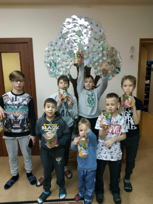 Воспитанники ЦССВ подарили батюшке ёлочные игрушки, сделанные своими руками. В подарок они получили от социальной службы храма сладкие подарки, игрушки, альбомы, краски и книжки.