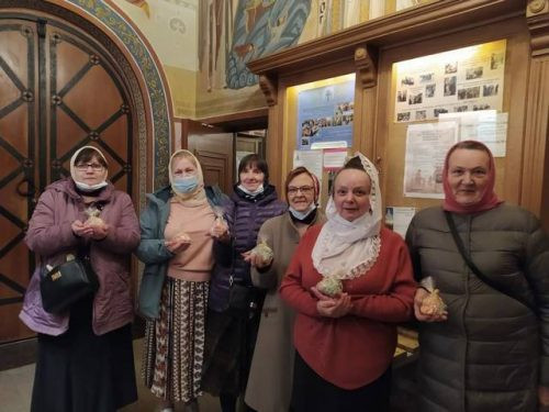 Служба милосердия храма Рождества Богородицы в Крылатском и волонтеры молодежного клуба «Рудненцы» в канун Пасхи Христовой посетила пожилых и лежачих подопечных, которые сами не смогли прийти в храм для освящения куличей.