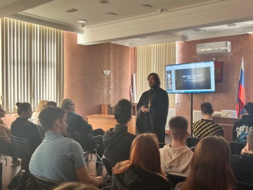 Студенты юридического факультета ВГУЮ (РПА Минюста России) с интересом слушали выступление священника, интересовались вопросами взаимосвязи норм нравственности и религиозной этики, повышения роли семьи в укреплении духовно-нравственной основы российского общества и государства.