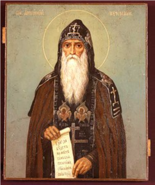 Преподобный Антоний (†1073) – основатель Киево-Печерского монастыря, один из основоположников русского монашества. Антоний родился недалеко от Чернигова, в местечке Любече; принял монашеский постриг на Афоне, где провел несколько лет, а затем вернулся на Русь.
