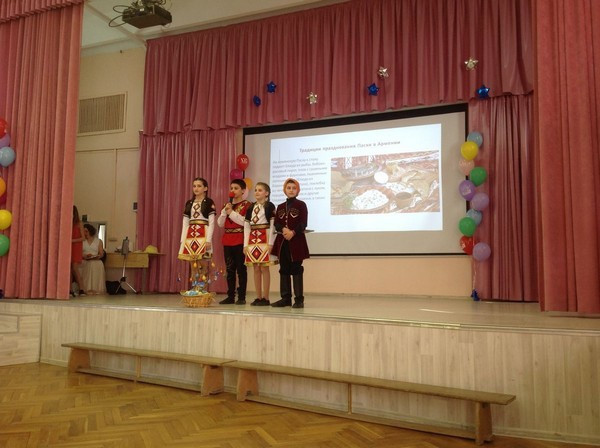 Обучающиеся начальной школы под руководством педагога Ярош Г.Н. представили хоровое исполнение пасхальной песни. В рамках Пасхального Фестиваля проводилась выставка пасхальных композиций, выполненных обучающимися ГБОУ Школа № 1248 совместно с педагогами. Пасхальный Фестиваль «Единство Православных народов» явился для всех участников, как высоконравственное художественное событие, которое объединило под своей эгидой различные виды детского творчества: музыкальное и хореографическое искусство, декламацию и драму, живопись и прикладные виды творчества. Участники и зрители отметили особую доброжелательную атмосферу Фестиваля, отсутствие духа соперничества. Участники Фестиваля, Пасхальной программы и художественной выставки были награждены грамотами и пасхальными подарками. А организаторам Фестиваля директор школы Никитина Н.И. вручила благодарственные письма. Пасхальный Фестиваль способствовал творческому развитию детей и подростков, их духовному и нравственному воспитанию, гармонизации межэтнических и межкультурных отношений среди подрастающего поколения, укреплению межконфессиональных связей и межнациональной дружбы. На Фестиваль были приглашены: Голубева Н.Е., методист ГБОУ ГМЦ ДОгМ; священники Николай, Павел, Леонид; гости – представители Болгарского посольства в Москве; аспирантка московской консерватории, оперная певица, лауреат международных конкурсов Мария Жекова; председатель Совета ветеранов педагогического труда ГБОУ Школа № 1248 Фабрикантова Н.В., член Совета ветеранов Горлач Н.Ф. и представители СМИ. Участниками Фестиваля были обучающиеся школы 6-8-х, 10-х классов. Ребята вместе со своими педагогами представляли творческие номера, посвященные пасхальным традициям у православных народов: России, Армении, Грузии, Греции, Болгарии, Беларуси, ЮАР. Все гости Фестиваля, благодаря этим выступлениям, познакомились с историей празднования Светлой Пасхи, различными народными традициями, народными костюмами и блюдами народной кухни. В концертной программе Фестиваля приняли участие также дети из зданий дошкольных групп № 4,5,6,7 и показали яркие и красочные танцевальные и вокальные номера. Обучающиеся начальной школы под руководством педагога Ярош Г.Н. представили хоровое исполнение пасхальной песни. В рамках Пасхального Фестиваля проводилась выставка пасхальных композиций, выполненных обучающимися ГБОУ Школа № 1248 совместно с педагогами. Пасхальный Фестиваль «Единство Православных народов» явился для всех участников, как высоконравственное художественное событие, которое объединило под своей эгидой различные виды детского творчества: музыкальное и хореографическое искусство, декламацию и драму, живопись и прикладные виды творчества. Участники и зрители отметили особую доброжелательную атмосферу Фестиваля, отсутствие духа соперничества. Участники Фестиваля, Пасхальной программы и художественной выставки были награждены грамотами и пасхальными подарками. А организаторам Фестиваля директор школы Никитина Н.И. вручила благодарственные письма. Пасхальный Фестиваль способствовал творческому развитию детей и подростков, их духовному и нравственному воспитанию, гармонизации межэтнических и межкультурных отношений среди подрастающего поколения, укреплению межконфессиональных связей и ме