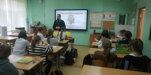 Клирик храма Рождества Пресвятой Богородицы в Крылатском провел просветительскую встречу с учащимися 1–5 классов района