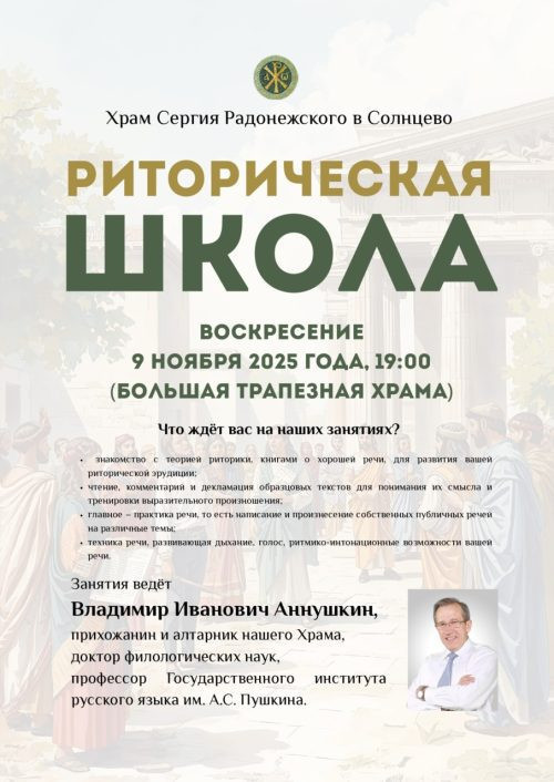 В храме прп. Сергия Радонежского в Солнцево начинает работу Риторическая школа