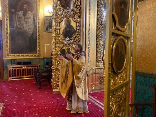 В день память бл. Василия Московского архиепископ Фома совершил Литургию в крестильном храме Богоявленского собора