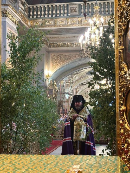 Архиепископ Одинцовский и Красногорский Фома 7 июня, в канун праздника Святой Троицы (Пятидесятницы), совершил всенощное бдение в Богоявленском кафедральном соборе в Елохово.