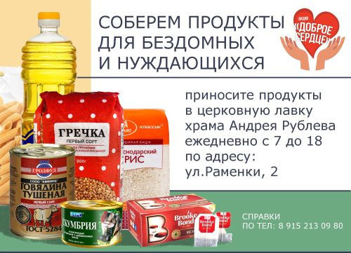 С 1 июня, после ослабления карантинных мер, в приходе была объявлена акция «Доброе сердце» — по сбору базовых продуктов питания для бездомных и нуждающихся. Информация об этом была также размещена на сотнях стендов Управы района Раменки.
