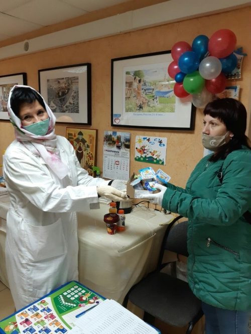 После ослабления карантинных мер добровольцы начали посильно помогать паллиативным больным больницы свт. Алексия, а на приходе и по всему району социальная служба объявила акцию по сбору продуктов для нуждающихся и бездомных. Посылки с гуманитарной помощью теперь отправляются почтой даже в регионы.