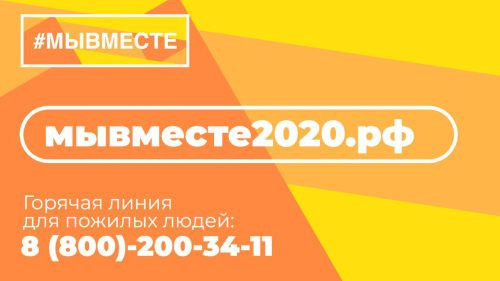 Проект общероссийской горячей линии «Мы вместе» по поддержке и координации помощи пожилым людям старше 60 лет и маломобильным гражданам, попавшим в группу риска в связи с распространением нового типа коронавируса COVID-19, реализован Общероссийским народным фронтом в партнерстве с Фондом Росконгресс, Ассоциацией волонтерских центров, Всероссийским общественным движением добровольцев в сфере здравоохранения «Волонтеры-медики», «Волонтерами Конституции» и ПАО «Ростелеком».