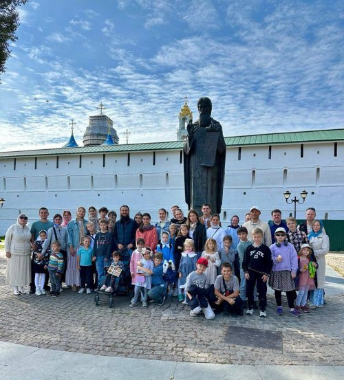 После воскресной Литургии дети вместе с родителями, преподавателями и настоятелем отцом Артемием Кокошем отправились в Сергиев Посад. Паломническая группа остановилась у Троице-Сергиевой Лавры, чтобы поклониться преподобному Сергию, игумену Радонежскому, а также приложиться к мощам святых угодников. Во время поездки настоятель отец Артемий и преподаватель Лариса Игоревна рассказали паломникам о житии прп. Сергия и о его роли в истории объединения Святой Руси.