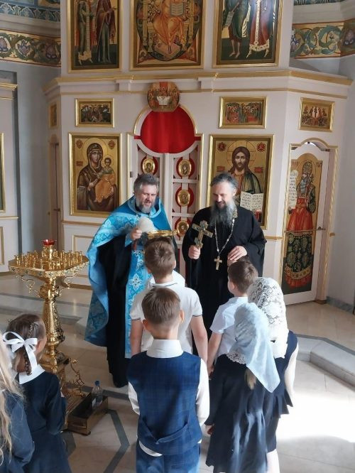 Особые праздничные мероприятия в этот день прошли и для учеников второго класса, обучение которых организовано непосредственно при нашем храме. Перед началом занятий священник Димитрий Карпов совершил традиционный молебен об учащихся. В соборной молитве ученики, родители и учителя просили Господа ниспослать «дух премудрости и разума», укрепить силы детей и благословить их труды. После молебна отец Виктор Волков обратился к собравшимся с поздравительным словом, напомнив о важности усердия и ответственности в учении.