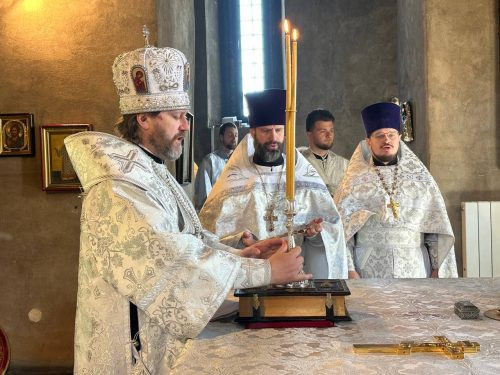 Владыке сослужила братия обители, а также ответственный за молодежное служение в Западном викариатстве г. Москвы иерей Илья Письменюк.