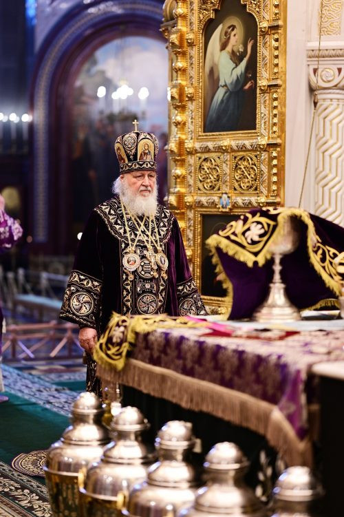 17 апреля 2025 года, в Великий Четверток, день Воспоминания Тайной Вечери, Святейший Патриарх Московский и всея Руси Кирилл совершил Божественную литургию святителя Василия Великого и чин освящения святого мира в кафедральном соборном Храме Христа Спасителя г. Москвы.