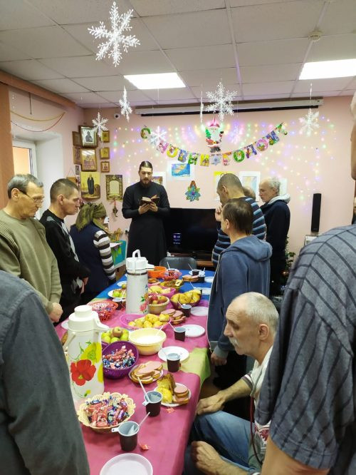 8 января добровольцы группы милосердия храма прп. Андрея Рублева в Раменках по благословению Настоятеля традиционно поздравили со светлым праздником Рождества Христова обитателей подопечного приюта для бездомных – отделения «Востряково» ЦСА им. Елизаветы Глинки.