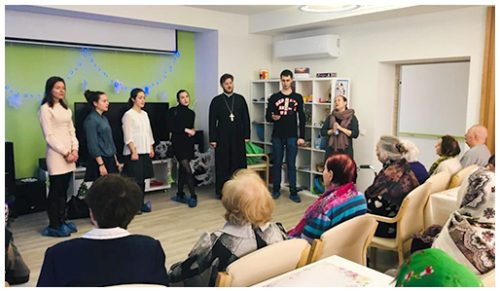Приходская молодежь храма Покрова в Филях во главе с отцом Олегом посетили резиденцию для пожилых людей «Идиллия», чтобы поздравить с Рождеством Христовым жильцов учреждения.