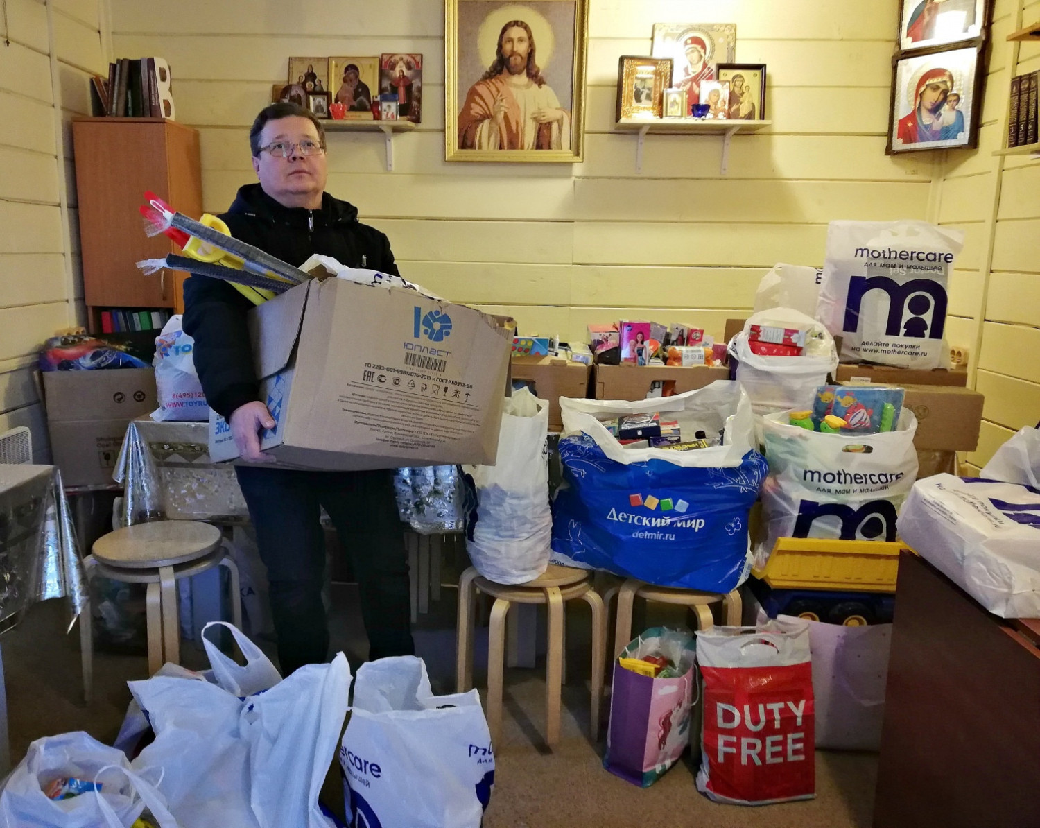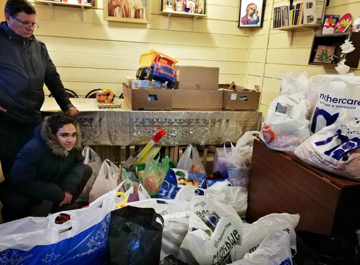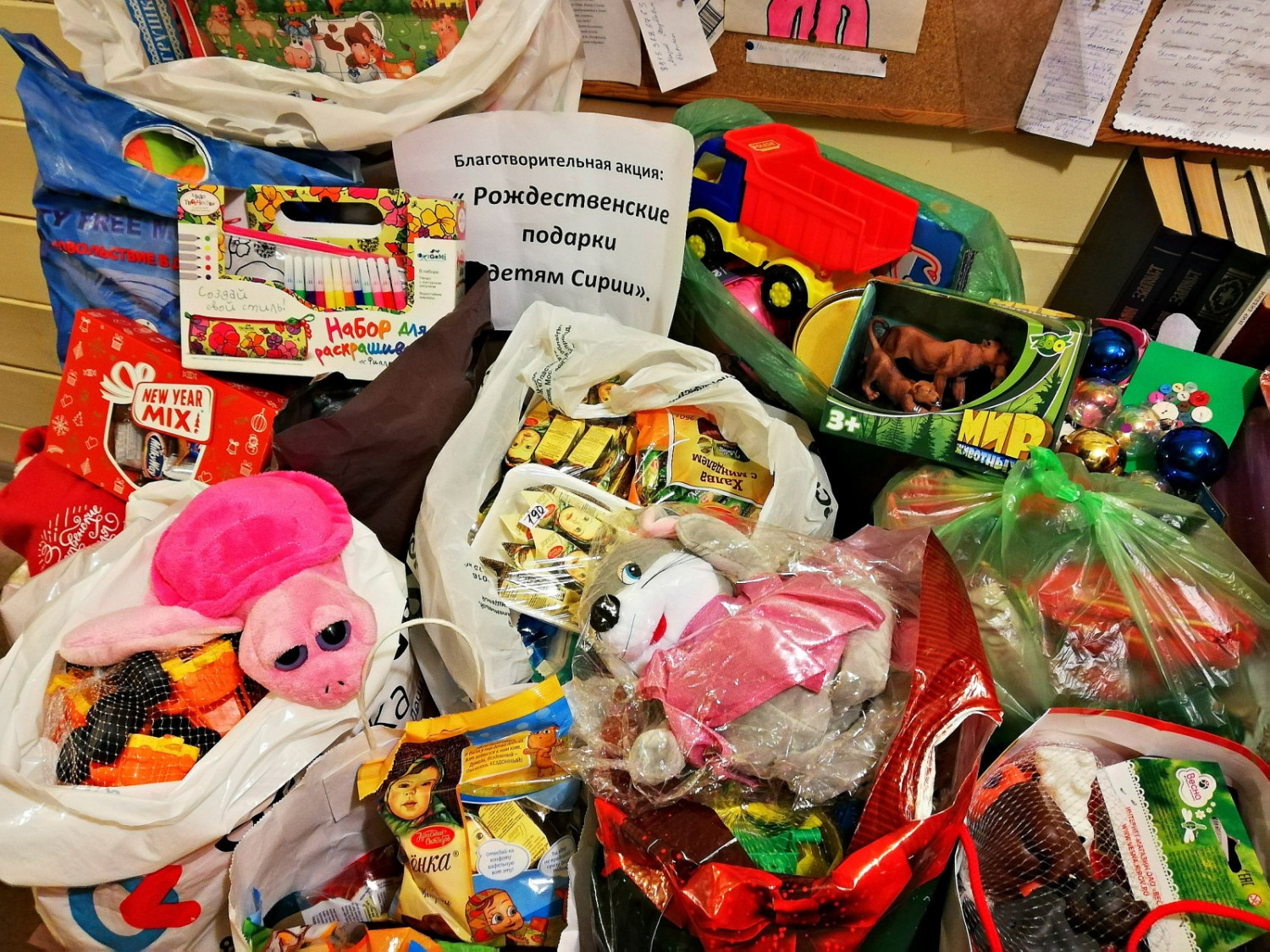 Большая часть сладостей и игрушек отправлены по главному адресату — в Коломенский Детский дом, которому мы оказываем помощь на постоянной основе, а другая часть распределена между Детским домом Непецино и Домом малютки города Коломны. Кроме этого, по согласованию с руководством школы, было решено присоединиться к общероссийской акции по сбору Рождественских подарков для сирийских детей — что и было сделано. Оставшиеся сладости и игрушки будут отправлены на Донбасс в пос. Зайцево, которому храм тоже уже оказывал гуманитарную помощь.