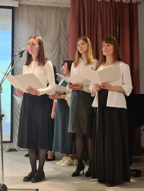 В этот раз хор под руководством Оксаны Петровны Гончаровой подготовил литературно-музыкальную композицию, посвященную подвигу защитников Родины – участников Великой Отечественной войны 1941–1945 гг. Со сцены прозвучали стихи, посвященные подвигу героев той войны, песни военных и послевоенных лет, зачитывались письма фронтовиков своим родным. Очень трогательным было увидеть живой отклик зрителей: многие подпевали хору, в глазах стояли слезы, а после концерта люди подходили и благодарили музыкантов.