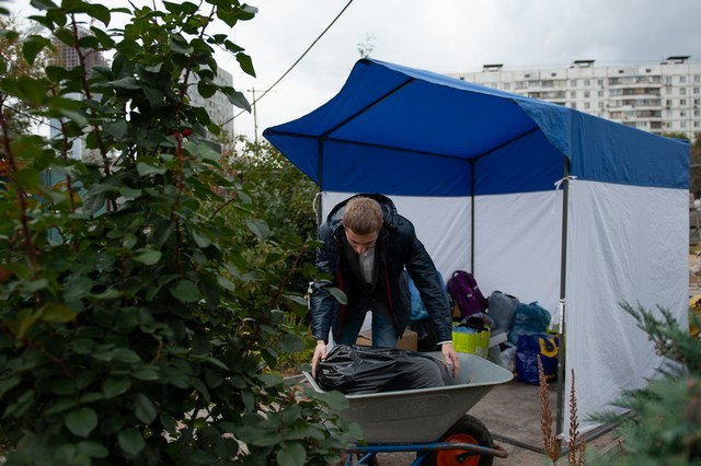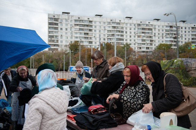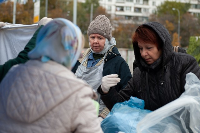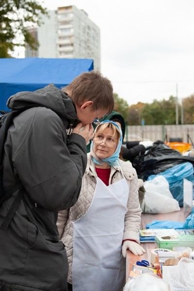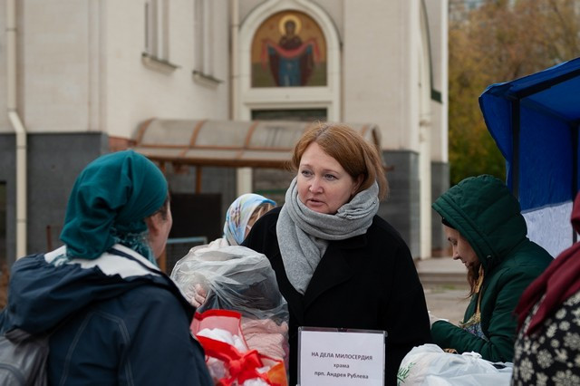 28 сентября 2019 года во дворе храма преподобного Андрея Рублева в Раменках прошла очередная акция по сбору вещей для бездомных.