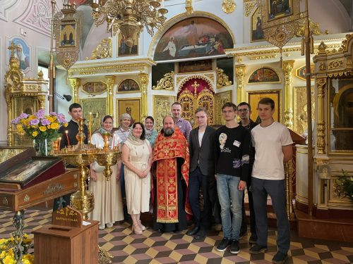 В начале праздничной встречи в храме Живоначальной Троицы на Воробьевых горах был отслужен молебен перед началом летней экзаменационной сессии, прозвучали молитвы святым Кириллу и Мефодию и напутственное слово всем учащимся священнослужителя Троицкого храма протоиерея Геннадия Еременко.