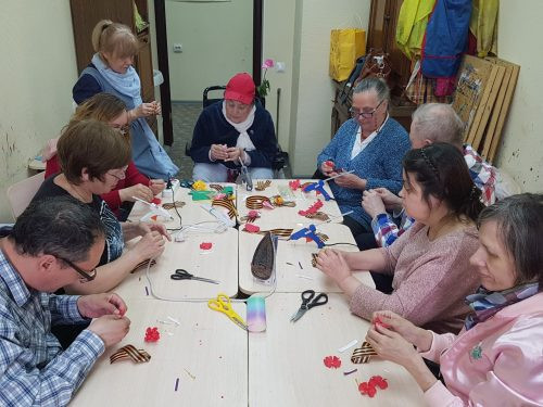 4 мая прихожанка храма святителя Спиридона Тримифунтского в Фили-Давыдково инвалид-колясочница Раиса Ивановна провела мастер-класс для глухих по изготовлению броши из Георгиевской ленты. Это мероприятие было посвящено знаменательной дате – 80-летию Победы в Великой Отечественной войне и Году защитника Отечества.