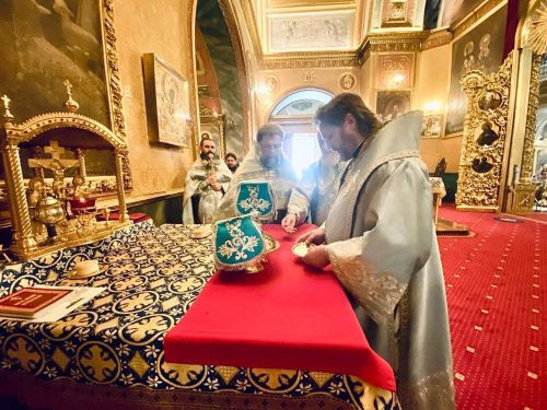 Управляющему Западным викариатством сослужили клирики собора.