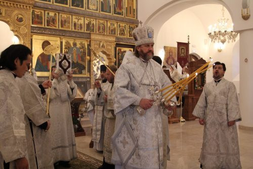 В храме Успения Пресвятой Богородицы в Матвеевском была совершена первая Божественная литургия архиерейским чином