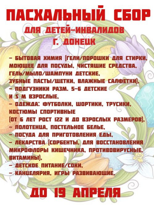 По благословению настоятеля протоиерея Андрея Галухина в храме прп. Андрея Рублева в Раменках проходит Пасхальный сбор в пользу сообщества семей с детьми-инвалидами г. Донецка.