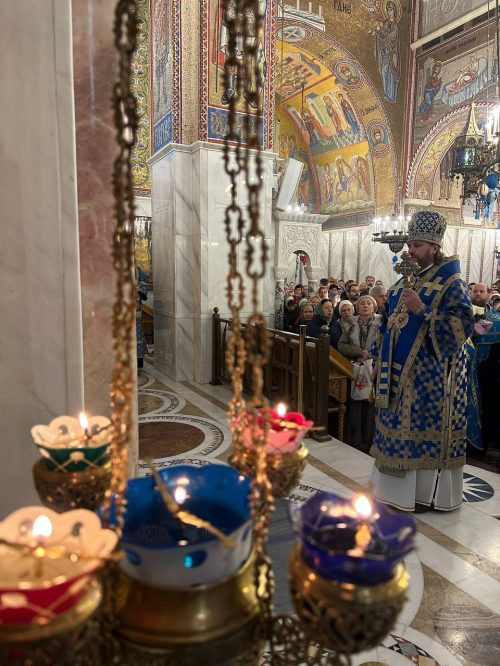 Накануне владыка совершил всенощное бдение в Богоявленском кафедральном соборе в Елохове.