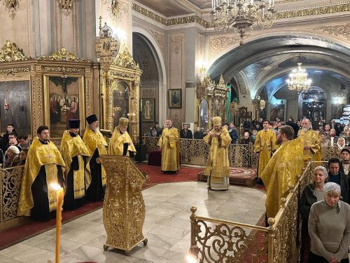 Вечером, 5 октября 2024 года. накануне Недели 15-й по Пятидесятнице, архиепископ Одинцовский и Красногорский Фома совершил всенощное бдение в Богоявленском кафедральном соборе в Елохове.