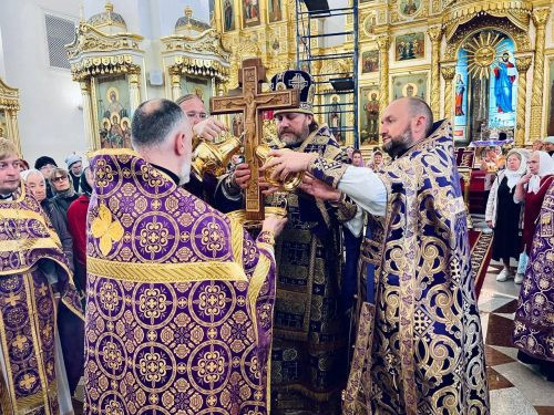 27 сентября 2024 года, в праздник Всемирного Воздвижения Честного и Животворящего Креста Господня, архиепископ Одинцовский и Красногорский Фома совершил Божественную литургию в Георгиевском кафедральном соборе г. Одинцово.