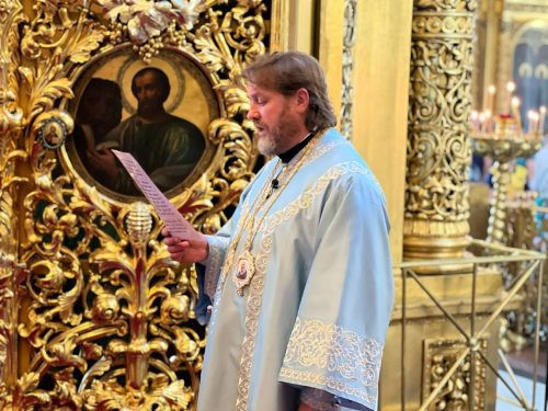 28 августа 2024 года, в праздник Успения Пресвятой Владычицы нашей Богородицы и Приснодевы Марии, архиепископ Одинцовский и Красногорский Фома совершил Божественную литургию в Богоявленском кафедральном соборе в Елохове.